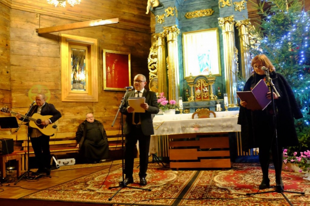 W sobotę w Poznaniu była inauguracja obchodów 100. rocznicy urodzin o. Mariana Żelazka, a w niedzielę kontynuacja, ale już w Chludowie w kościele parafialnym. Ta pierwsza miała charakter liturgiczno-naukowy, ta druga zaś – artystyczny. Aktorski duet dobrze znany widzom kin, teatrów i telewizji – Ewa Ziętek i Tadeusz Chudecki – przy akompaniamencie muzyki w wykonaniu Jerzego Filara przygotował spektakl muzyczno-poetycki „Nie bój się świętości”. Jego repertuar tworzą wybrane przez aktorów, ich właśnie poruszające, teksty biblijne i literackie, głównie polskie, o charakterze religijnym. Chludowska publiczność miała nie lada okazję, aby jeszcze w nastrojowej bożonarodzeniowej scenerii kameralnego drewnianego kościółka usłyszeć strofki samych wielkich poetów, których talent uwrażliwił się także na piękno Stwórcy i bogactwo Jego stworzeń. A było co słuchać – od wzniosłych Psalmów przez kipiące humorem, ale także prostotą i łagodnością wiersze ks. Jana Twardowskiego, mistrza skrótu, celności oraz głębi myśli po refleksyjne, „klękające” przed Bogiem wersy Romana Brandstaettera i Anny Kamieńskiej. Byli klasycy poezji i muzyki staropolskiej – Wacław z Szamotuł i Jan Kochanowski, ale także reprezentanci następnych epok: Cyprian Kamil Norwid, Juliusz Słowacki, Adam Mickiewicz czy współcześni: Czesław Miłosz i Wisława Szymborska. Tyle poeci, poniekąd zawodowi, ale do świętości artyści w Chludowie zachęcali także słowami tekstów wielkich mistyków i świętych: św. Franciszka z Asyżu, św. Jana Pawła II, św. o. Pio, św. Matki Teresy z Kalkuty czy św. s. Faustyny Kowalskiej. A na finał był rarytas: Ewa Ziętek przeczytała fragment listów/dziennika bohatera dnia – o. Mariana Żelazka. Słowa, które znalazła, nie tylko jąwzruszyły, kiedy po raz kolejny powtarzała za o. Marianem, słowa skierowane do Pana: „abyś Ty tylko był w pobliżu….”. I onniczego więcej nie potrzebował. Ewa Ziętek, Tadeusz Chudecki, Jerzy Filar i publiczność – też. Kiedy brawom nie było końca, Jerzy Filar zafundował „ludziskom” góralską kolędę. Hej!