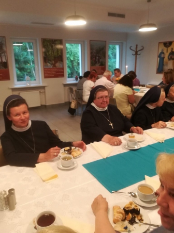 S. Jadwiga Waniek w czwartek 5 lipca świętowała w Chludowie 25-lecie pierwszych ślubów zakonnych. Przyjaciele, znajomi i domownicy tutejszego klasztoru werbistów oraz miejscowe siostry „niebieskie” modlili się w jej intencji podczas Mszy Świętej, którą sprawowali współbracia misjonarze: rektor o. Jan Wróblewski, o. Kazimierz Grabowski, o. Wojciech Grzymisławski i o. Firmin Azalekor. O. rektor wygłosił okolicznościowe kazanie, w którym m.in. mówił o realizacji powołania s. Jadwigi (całość kazania TUTAJ). Zwyczajem chludowskim wszyscy na koniec mszy zaśpiewali Siostrze „Życzymy, życzymy…”. Potem już były życzenia indywidualne, kwiaty i wspólna agapa, którą m.in. przygotowała sama Jubilatka, na co dzień krzątająca się po kuchni klasztornej i dbająca o smaki i żołądki wszystkich domowników.