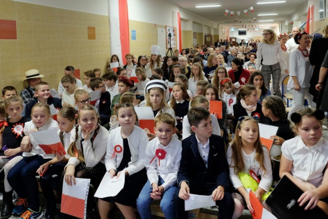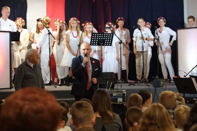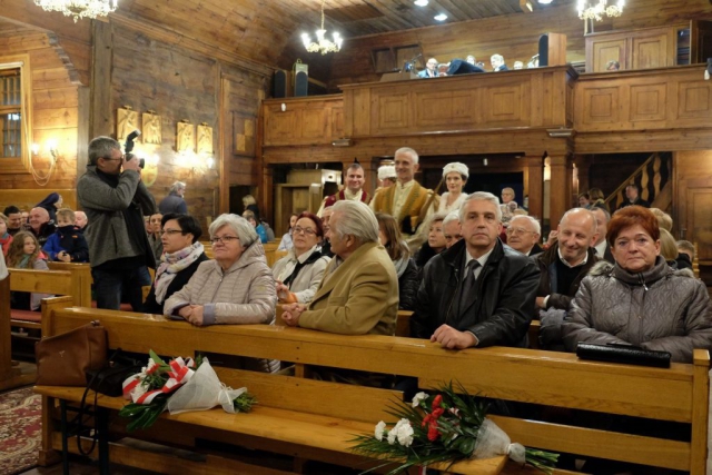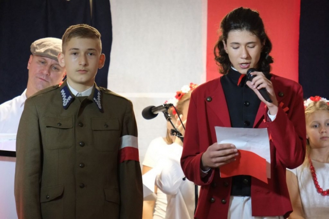 W wigilię rocznicy odzyskania niepodległości w parafialnym kościele strażacy, uczniowie i koło gospodyń wnieśli sztandary, które stanęły w prezbiterium, a potem zabrzmiała pieśń wzorowana na Rocie „Nie rzucim, Chryste, świątyń Twych, nie damy pogrześć wiary!”.