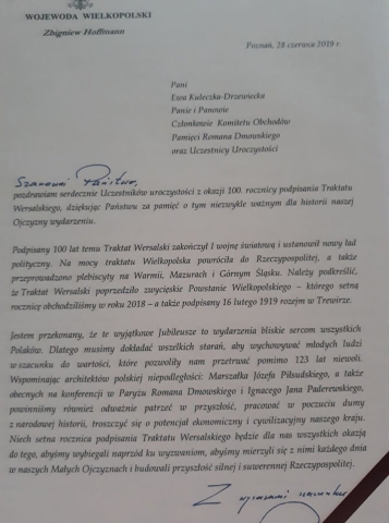 Specjalny list na tę okoliczność na ręce E. Kuleczki-Drzewieckiej wysłał Zbigniew Hoffmann, wojewoda wielkopolski.