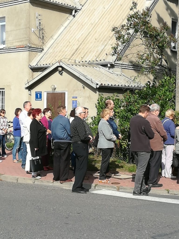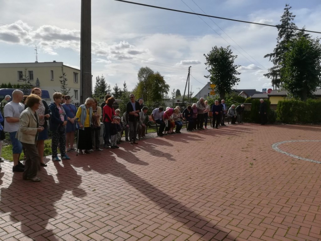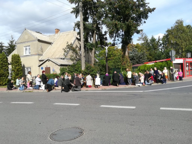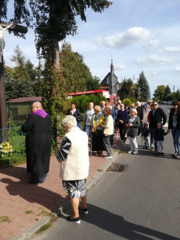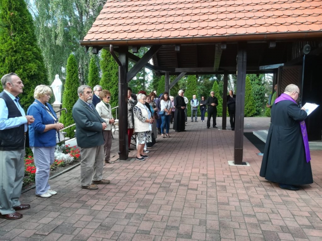 Z pieśnią „Matko Najświętsza, do Serca Twego…” uczestnicy modlitewnego spotkania udali się na plac przed kościołem, gdzie przed figurą Matki Bożej odmówili różaniec. Po nim o. Ryszard poprowadził wokół kościoła Drogę Krzyżową, do której rozważania czytał o.Jan.