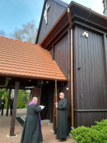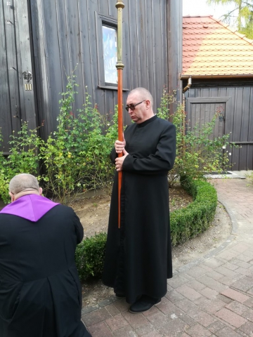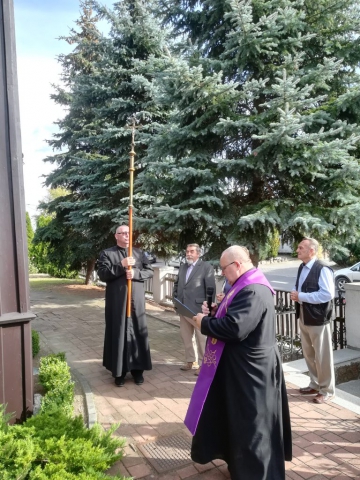 Koronkę do Miłosierdzia Bożego w obchodzone właśnie tego dnia święto Podwyższenia Krzyża Świętego rozpoczęła pieśń „Wisi na krzyżu”. Po Koronce, prowadzonej wspólnie z proboszczem o. Ryszardem Hoppe, o. Jan prosił ukrzyżowanego Jezusa, aby błogosławił naszemu zawierzeniu, umocnił naszą wiar i udzielił nam łaski miłosierdzia, abyśmy w momentach próby okazali się wierni Bogu, krzyżowi i Ewangelii. Potem w ciszy każdy przed krzyżem Chrystusa złożył własne intencje, prośby i przebłagania.