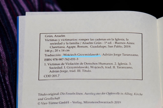 W kwietniu tego roku wydawnictwo „Guadalupe”, razem z czterema innymi znanymi argentyńskimi wydawnictwami (Agapa, Bonum, Claretiana, San Pablo), wydało książkę Anselma Grüna w tłumaczeniu o. Wojciecha Grzymisławskiego z okazji Międzynarodowych Targów Książki. Ukazała się ona pod tytułem: „Víctimas y victimarios. Romper las cadenas en la Iglesia, la siociedad y la familia.” („Ofiary i sprawcy. Zerwać łańcuchy w Kościele, społeczeństwie i w rodzinie”).