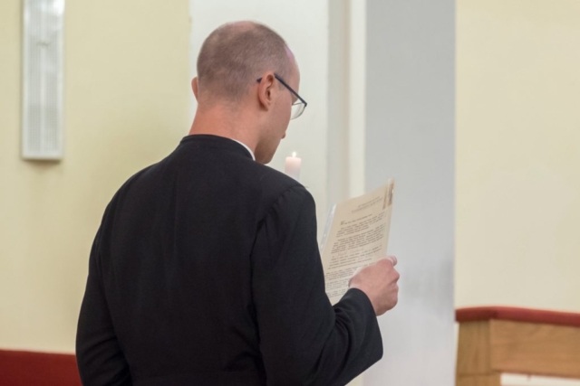 Najpierw śluby czasowe składał Arkadij Butenko. „Niech przystąpi ten, który pragnie złożyć pierwsze śluby zakonne” – wezwał go przed ołtarz o. Franciszek Bąk SVD, magister nowicjatu. Tam czekał już o. prowincjał, przed którym Arkadij wypowiedział słowa ślubowania.