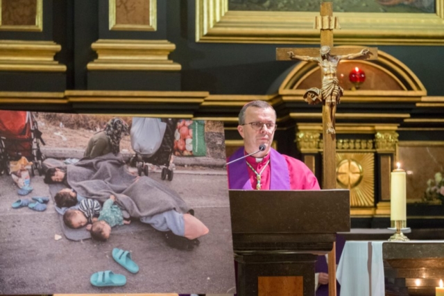– Przychodzimy, aby wyrazić naszą pamięć, szacunek i wspomnieć tych, którzy szukali lepszego życia, którzy musieli cierpieć i którzy zginęli. Statystyki są przerażające. Dziesiątki, setki, tysiące, dziesiątki tysięcy, ale nie chcemy tutaj mówić o liczbach. Przyszliśmy dziś, aby wspominać osoby, bo to byli konkretni ludzie tak jak my. Ci ludzie mieli swoje imiona, zawody, historie, przeżycia, pragnienia. Chcieli albo musieli uciekać. (…) I spotkała ich śmierć. Dlatego dzisiaj chcemy myśleć o osobach, więc podczas naszego spotkania wybrzmią imiona choćby niektórych, których imiona znamy, ale także ci, których imion nie znamy – wszystkich chcemy z szacunkiem wspominać i się za nich modlić. Dzisiaj słuchamy słowa o Jezusie, który ucisza burzę. On ucisza burzę, bo jest Panem wszystkiego. On ma moc, aby uciszyć burzę. Słuchamy tych słów i wyznajemy naszą wiarę w Jego królowanie i w Jego panowanie. Wyznajemy, że On jest Panem i Panem jedynym. Przychodzimy pokornie z tymi ludzkimi dramatami, a właściwie z dramatem każdego i każdej z tych, którzy zginęli. Przychodzimy z tymi dramatami śmierci i cierpienia naszych sióstr i braci, przychodzimy z naszym smutkiem, z naszymi łzami, ale też i z naszą niezgodą, że tak się dzieje. Przychodzimy i pokornie wołamy: „Jezu, przyjdź, bądź z nami w tych dramatach i przemień serca tych, od których zależą losy świata i ludzi. Przyjdź, Panie, i przyjmij tych, co zginęli, i daj im niebo. Przyjdź, Panie i bądź z nami i pokaż nam, co mamy robić, bo nie chcemy być obojętni wobec tego wszystkiego, co się dzieje.