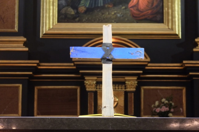 Kiedy w kościele rozbrzmiewała pieśń „Modlitwa Królestwa”, koncelebransi procesyjnie zbliżyli się do ołtarza. Później członkowie Wspólnoty wnieśli krzyż, wykonany w Lesbos z desek łodzi, na których przybywali migranci, a które rozbiły się u wybrzeży wyspy, oraz zdjęcia przedstawiające dramat ich życia po pożarze obozu.